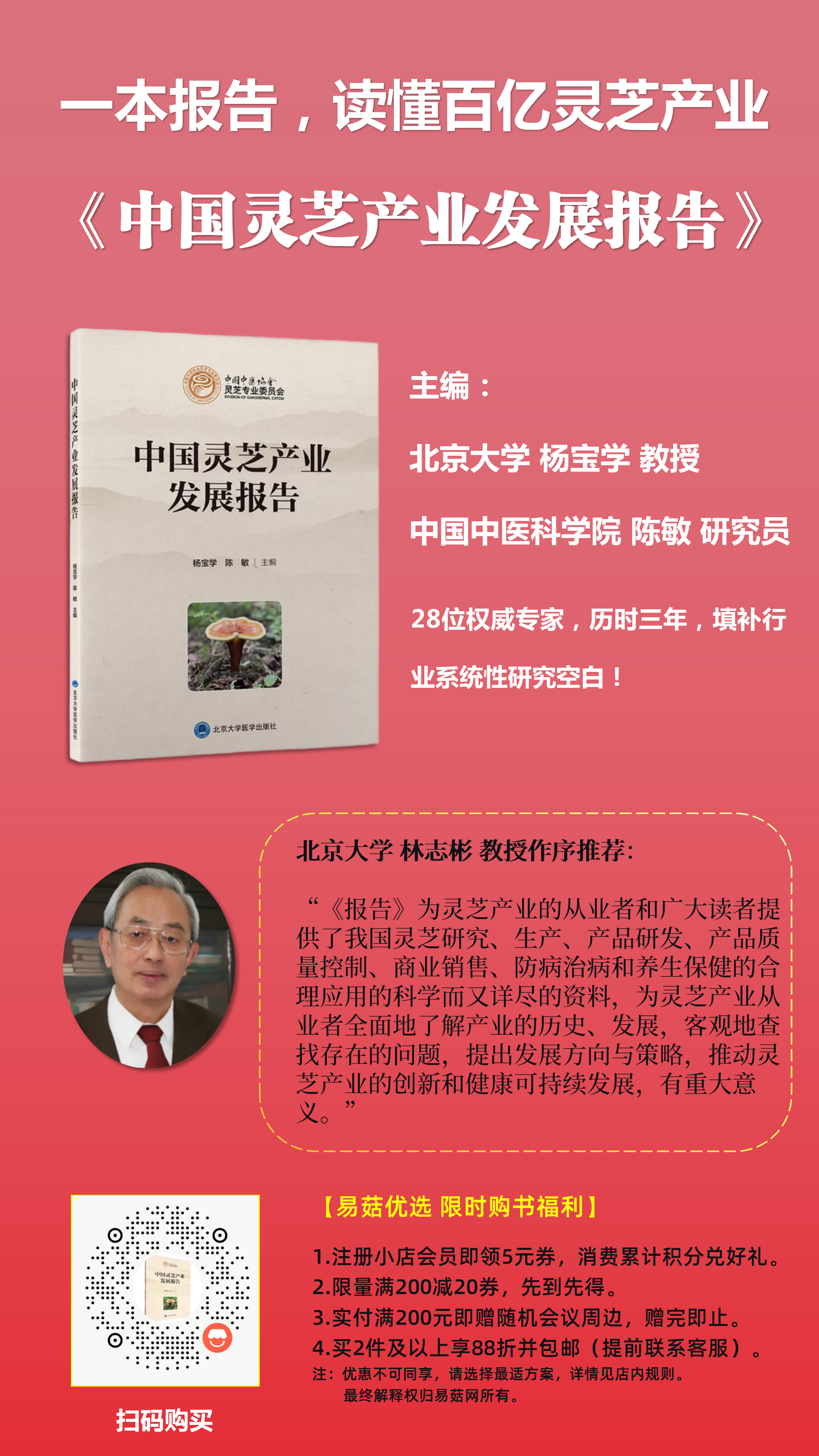 为此,中国中药协会灵芝专业委员会与药食同源专业委员会携手国内著名学术专家与行业代表,历时三年精心编撰《中国灵芝产业发展报告》。