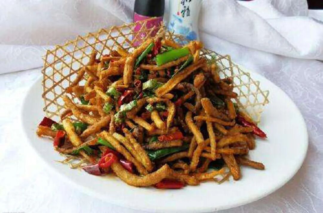 5、把汤汁用旺火煸炒至干,汤汁吸附在蘑菇上。