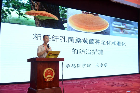 8月13日,2022第三届中国桑黄产业发展大会暨中国(临清)桑黄全产业链发展大会在山东临清举行。在桑黄研究学术研讨会环节,承德医学院副研究员宋永学做了“粗毛纤孔菌桑黄菌种老化和退化的防治措施”的报告。