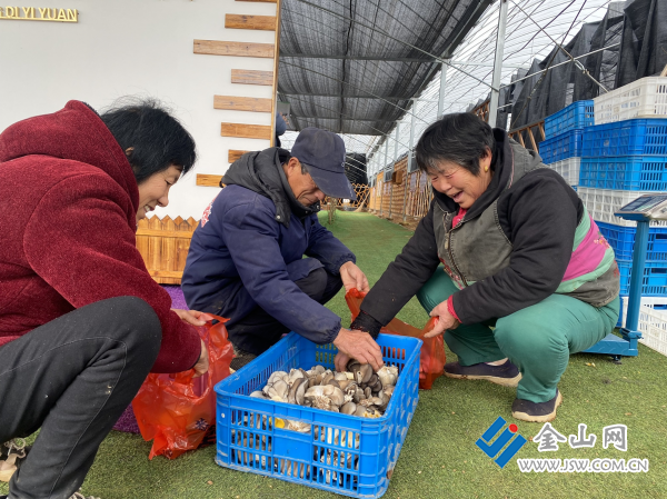 1月24日上午7时许,记者走进江苏句容茅山镇丁家边村桑葚种植示范区大棚,室外气温虽然零下,但棚内温度却超过15℃,一簇簇菌菇从菌床上破土而出,工作人员满脸洋溢着丰收喜悦,小心翼翼地将采摘的菌菇放进筐里,码放整齐后即将送往预定饭店。