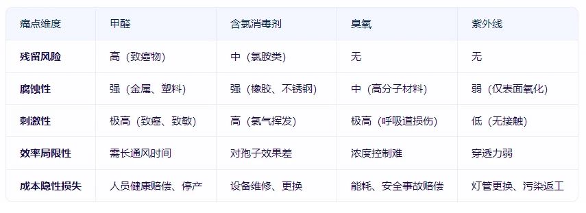 通风要求高:消毒后需持续通风12-24小时,延误生产周期。