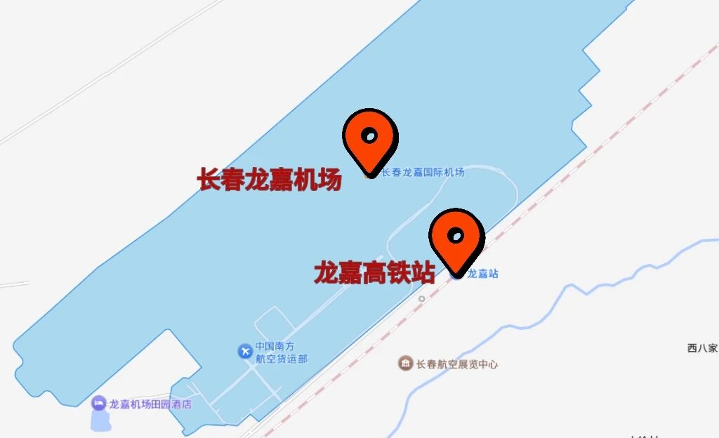 注意:长春龙嘉机场和龙嘉高铁站在同一地方,下飞机后可根据指示牌步行即可到达高铁站。