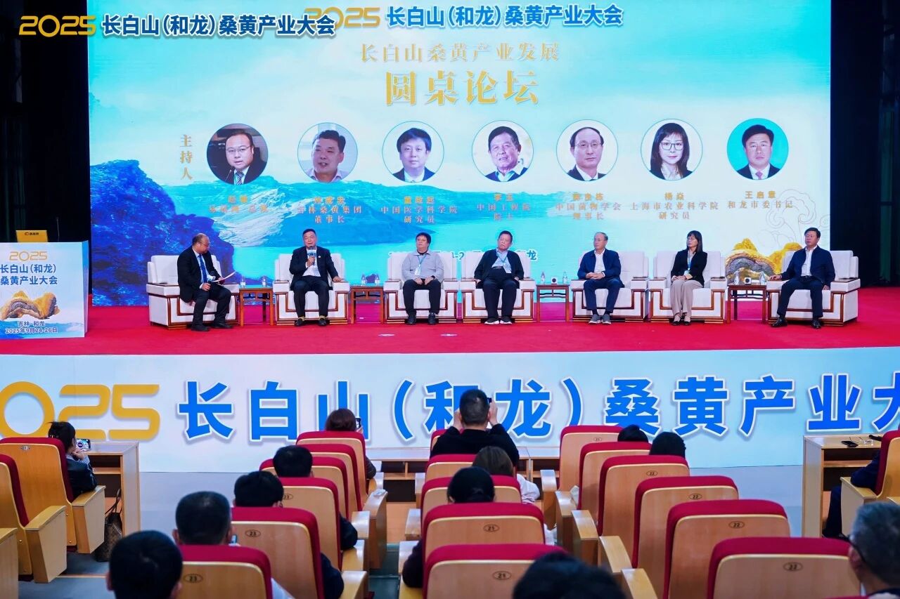 近日,在吉林和龙举行的2025长白山(和龙)桑黄产业发展大会上,一场高规格的圆桌对话成功举办。中国工程院院士、全国脱贫攻坚楷模、吉林农业大学学术委员会主任李玉,中国菌物学会理事长郭良栋,中国菌物学会桑黄产业分会秘书长、上海市农业科学院研究员杨焱,中国中药协会药食同源专委会副秘书长、中国医学科学院药用植物研究所党委副书记、研究员董政起,和龙市市委书记王启章,吉林桑黄生物科技集团有限公司董事长孙成忠齐聚一堂,围绕长白山和龙桑黄产业的现状与未来,展开深度探讨,为和龙打造“世界桑黄之都”建言献策。