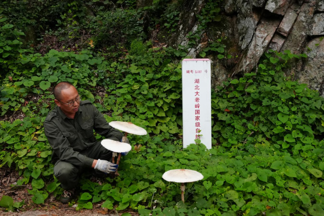 近日,大老岭自然保护区的大型真菌调查团队在野外发现了一丛令人惊叹的“巨型蘑菇”:菌柄高耸近50厘米,菌盖直径超过30厘米,宛若一柄撑开的棕色巨伞!经宜昌市农科院微生物研究所专家综合采用形态学观察与分子生物学技术鉴定,最终确证其是欧洲广受欢迎的食用菌——高大环柄菇,这也是该物种在保护区的首次记录,为本地生物多样性添上了生动一笔。