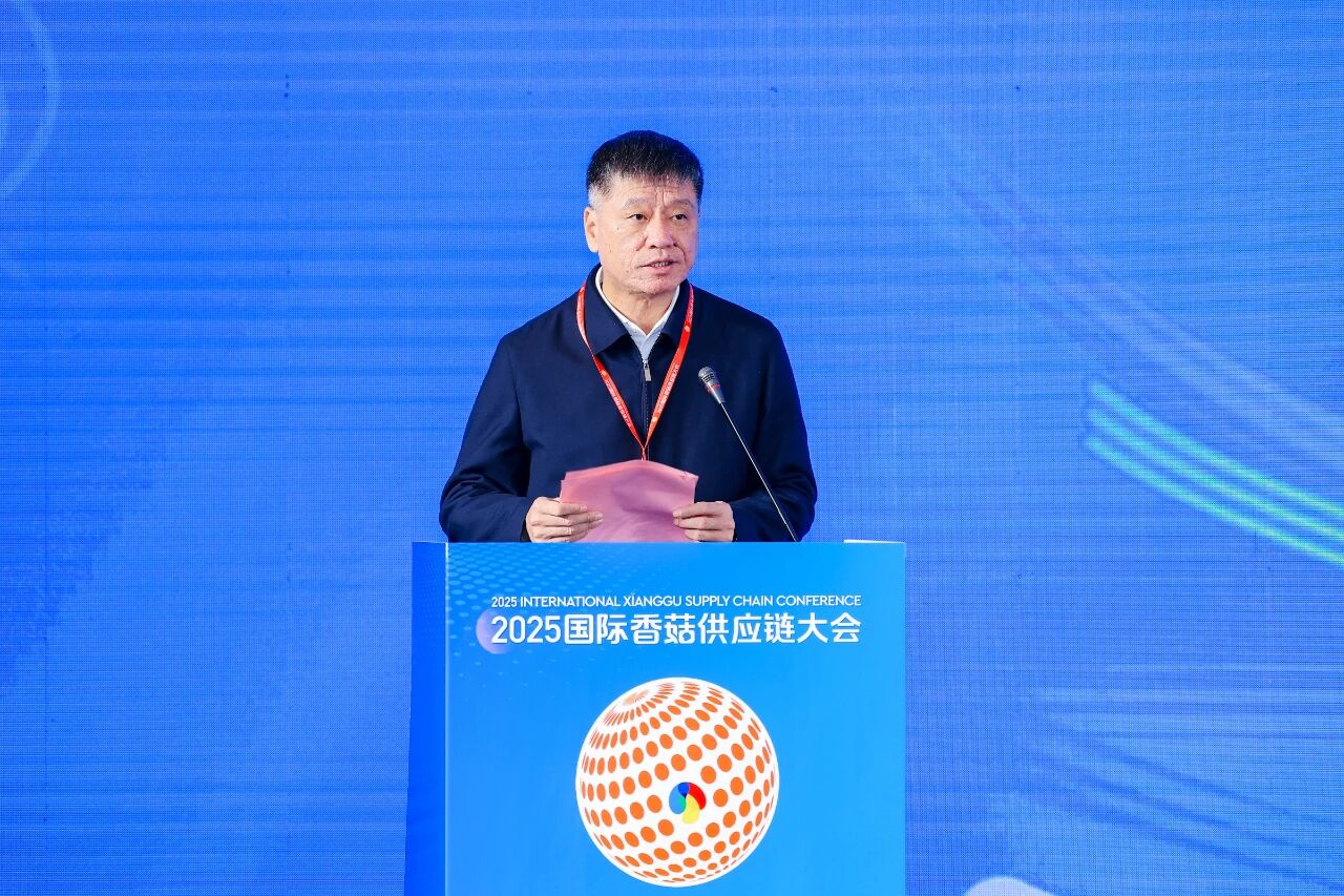 中国工程院院士、全国脱贫攻坚楷模、国际药用菌学会主席、吉林农业大学学术委员会主任李玉教授在致辞中回顾了中国食用菌学科的发展历程,并围绕“以菇为媒,连接世界”的大会主题,就推动香菇产业高质量发展提出五点关键路径:一是转变发展思维,从“为产品找客户”转向“为客户造产品”,强化消费导向;二是拓展产业边界,融入大食品生态,开发即烹食品、菌菇蛋白等创新产品;三是深化全球布局,推动从单一产品输出向菌种、装备、技术、标准全链条出海转变;四是强化科技赋能,运用AI、大数据等培育新质生产力,实现从“种蘑菇”向“种科技”跨越;五是厚植文化底蕴,挖掘香菇背后的农耕文明内涵,提升品牌价值。他呼吁各方以此次大会为契机,推动科技创新与产业创新深度融合,共同助力中国香菇产业驶向更高质量、更具全球影响力的新航程。