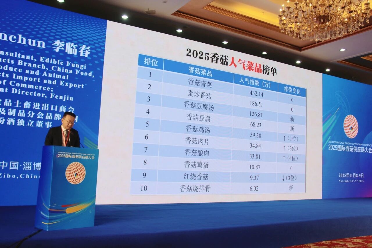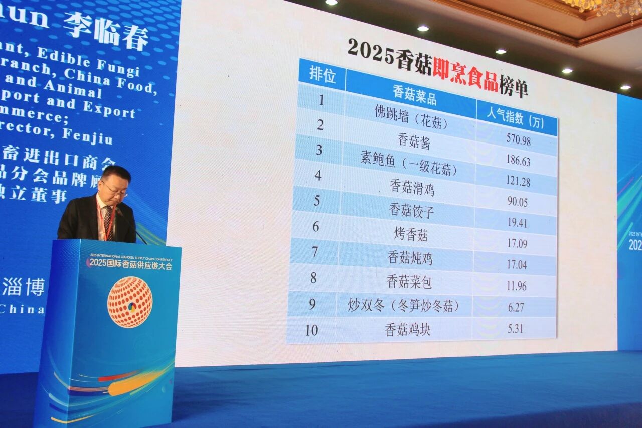 开幕式上,中国食品土畜进出口商会食用菌及制品分会品牌顾问李临春发布了 2025 中国香菇区域品牌强度榜单、2025 香菇人气菜品排行榜、2025 香菇预制菜热度排行榜榜单,为行业发展提供重要参考。