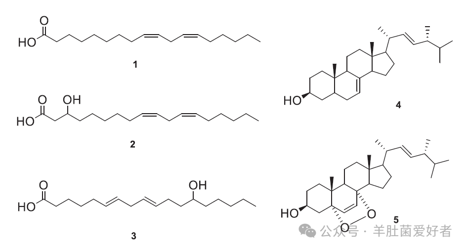 此外,还有两种羟基化的脂肪酸衍生物也显示出一定的抑制效果。这些都是首次在羊肚菌中被报道。