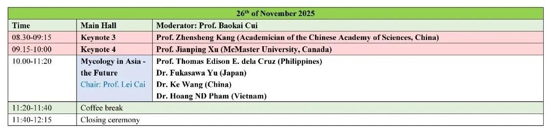 AMC 2025 will convene leading mycologists, researchers, and students from across Asia and around the world to exchange the latest advancements and insights in fungal biology, ecology, biotechnology, and their roles in promoting sustainable development. The programme comprises keynote lectures, thematic symposia, poster presentations, and networking events designed to encourage academic exchange, foster collaboration, and inspire the next generation of mycologists.