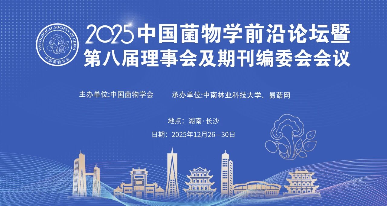 为总结2025年菌物学领域研究进展与成果,促进菌物学科发展与菌物产业进步,经中国菌物学会研究决定,于2025年12月26-30日在湖南长沙召开2025年中国菌物学前沿论坛,并在同期召开中国菌物学会第八届理事会及《菌物学报》编委会会议。欢迎各位菌物学界同仁、学会会员积极参加会议,有关安排通知如下: