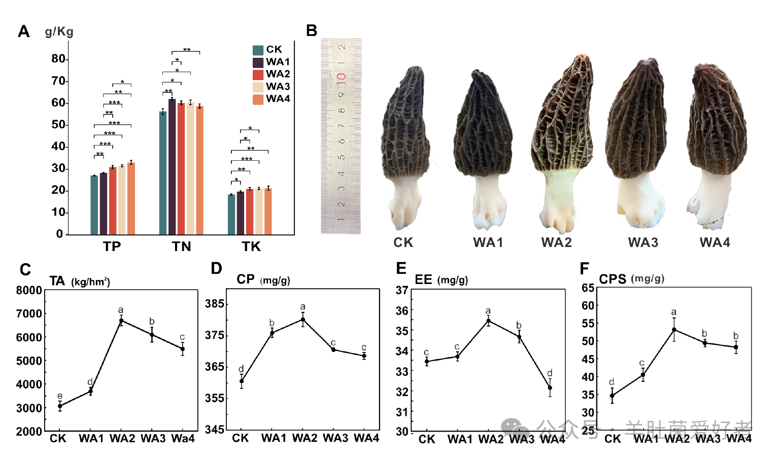 参考文献:Huang, K.; Li, L.;Wu,W.; Pu, K.; Qi, W.; Qi, J.; Li, M. Enhancing Morchella Mushroom Yield and Quality Through the Amendment of Soil Physicochemical Properties and Microbial Community with Wood Ash. Microorganisms 2024, 12, 2406. https://doi.org/10.3390/microorganisms12122406