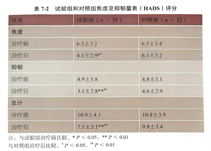 试验组患者在采用内分泌治疗的基础上,加服菌物药灵芝制剂,对照组加服安慰剂作为对照,共治疗4周。在治疗前后,患者按癌症治疗相关疲劳功能评估表(FACT-F,评分增加表示改善)、焦虑及抑郁量表(HADS,评分减少表示改善)、生活质量问卷表(EORTCQLQ-C30,评分减少表示改善)进行评估。