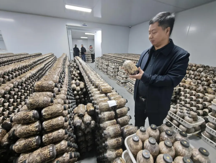 这种掌控力源于技术。最新液体菌种生产技术+全自动装袋灭菌+智慧化管控,构成智能化生产线。木屑、棉籽壳等原料经搅拌、装瓶、121度高温高压灭菌,再通过无菌接种,全程数据可追溯。