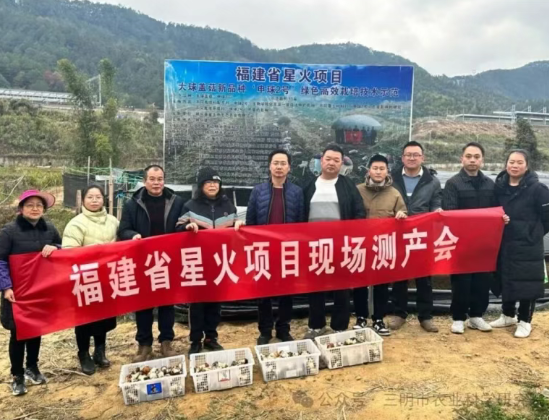 近日,受福建省科技厅委托,三明市科技局组织有关专家,在三明市将乐县金土地生态农业有限公司种植基地对三明市农业科学研究院食用菌所承担的福建省星火计划项目“大球盖菇新品种‘申球2号’绿色高效栽培技术示范推广”进行现场测产。经专家现场测评,该项目建立‘申球2号’绿色高效栽培技术示范基地面积为17.4亩,平均每亩投料量4000千克(干重),专家组现场随机选取3块样区(每块样区面积40平方米),当日平均产量为0.28千克/平方米,一级菇比例为60.6%,该项目已完成现场测产。