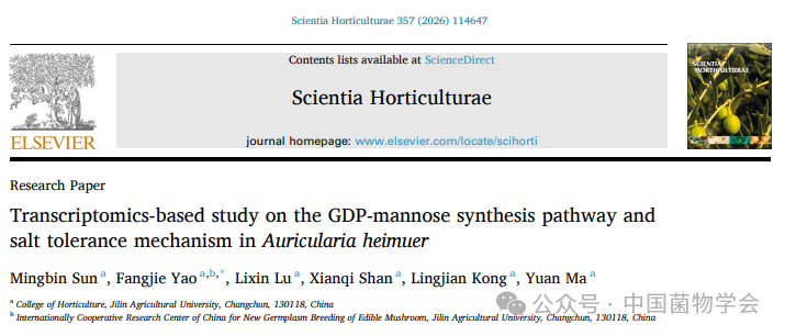 研究成果以题为“Transcriptomics-based study on the GDP-mannose synthesis pathway and salt tolerance mechanism in Auricularia heimuer”发表在国际学术期刊Scientia Horticulturae。