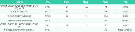2024年3月8日全国主要批发市场黑木耳价格行情